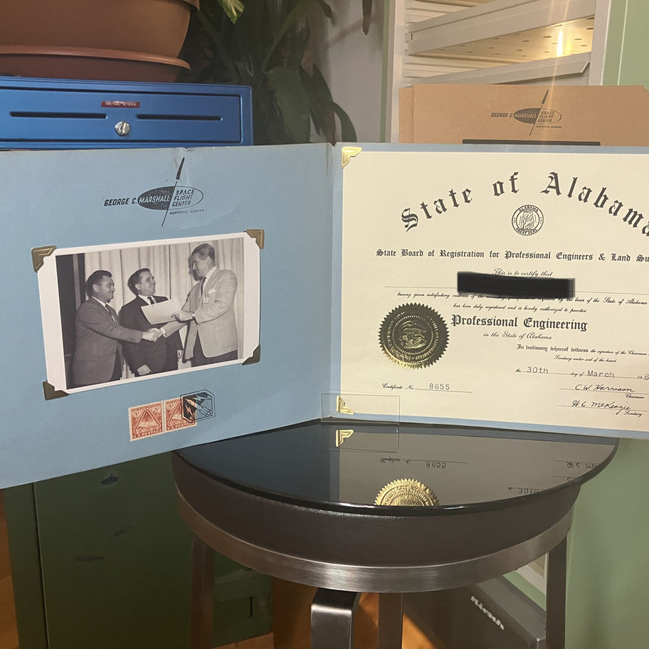 2. Diploma Included: Original University of Alabama Professional Engineering Certificate associatted to the letter by von Braun.